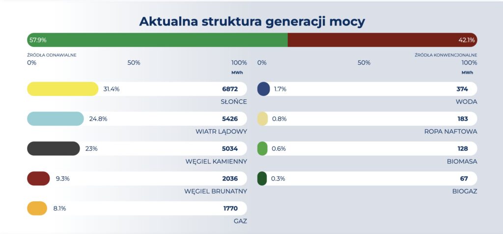 Póki co, w tym tygodniu ok. połowa energii elektrycznej wyprodukowanej w Polsce pochodzi z OZE.