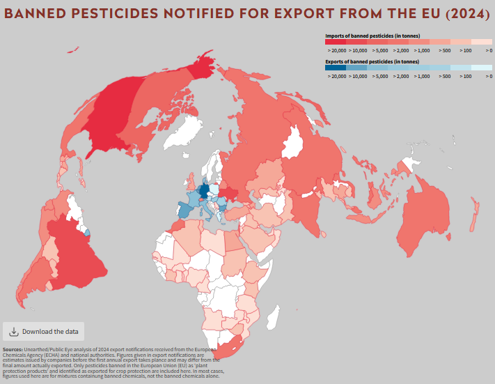 Skala problemu po raz pierwszy została nagłośniona sześć lat temu. We wrześniu 2020 r. Unearthed, zespół dziennikarzy śledczych finansowany przez Green Peace i szwajcarska organizacja pozarządowa Public Eye opublikowały raport z kompleksowymi danymi na temat wywozu pestycydów i mapą przedstawiającą kierunki eksportowe. Niedługo później Komisja Europejska opracowała dokument zatytułowany „Chemicals Strategy for Sustainability”, który określiła jako jedno z kluczowych zobowiązań europejskiego Zielonego Ładu.