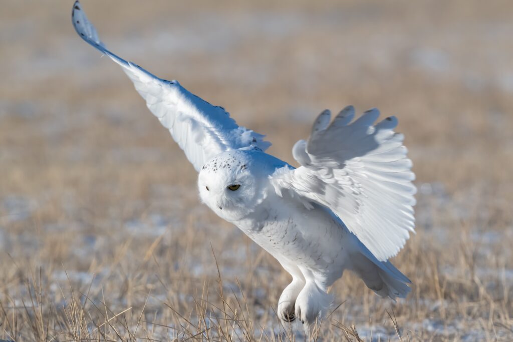 Sowa śnieżna jest perfekcyjnym myśliwym. W okresie zimowym, gdy poluje, jest najbardziej aktywna o zmierzchu i świcie. Z kolei w sezonie letnim żeruje przez cały dzień. Ten duży ptak drapieżny jest związany z otwartymi siedliskami tundry ze sporą warstwą śniegu. Tam specjalizuje się w bezszelestnym nurkowaniu za zdobyczami w śnieżnym puchu. Robi to zazwyczaj z zaskoczenia.