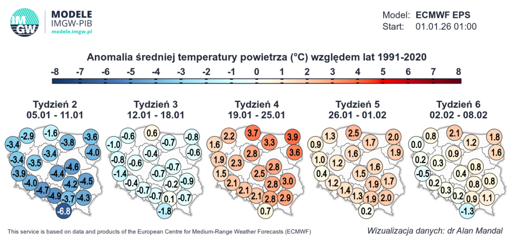 Prognozy wskazują, że pierwsza połowa stycznia będzie bardzo zimna. Niewykluczone, że nocami temperatury będą spadać nawet do kilkunastu stopni poniżej zera, także na zachodzie Polski. Dopiero w drugiej połowie miesiąca możliwa jest odwilż, choć nie ma co do tego pewności.