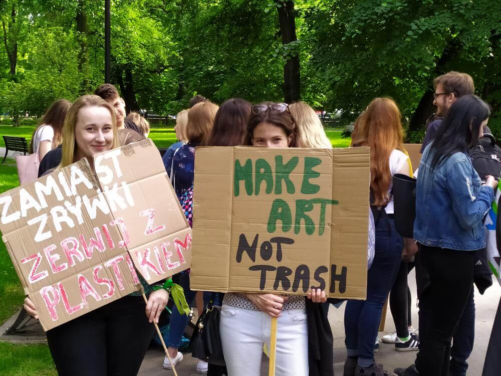 Na transparentach znalazły się hasła, takie jak „Make art, not trash”, „Ekologicznie znaczy logicznie”, „Segreguję, nie marnuję” czy „Środowisko ponad wszystko”. Dzień przed „Spacerem dla Ziemi” młodzi opublikowali w mediach społecznościowych film, w którym opowiadają o wydarzeniu: